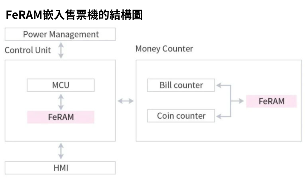 FeRAM具備極高的重寫次數,即使在斷電時仍能保存資料,有助於系統的快速恢復,因此被廣泛應用於售票機中。